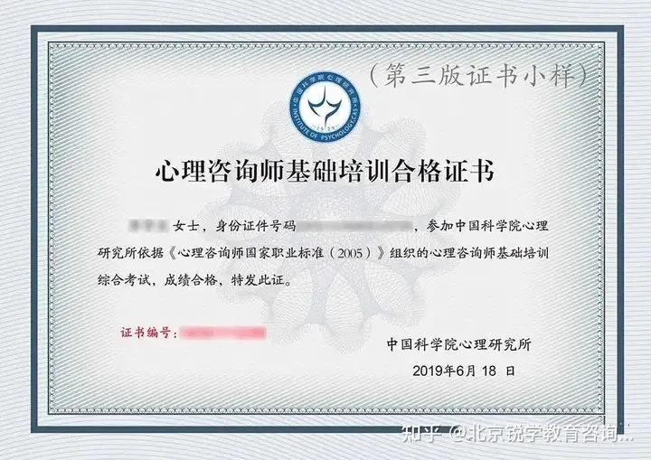 由中科院心理所颁发的《中科院心理咨询师基础培训合格证书》